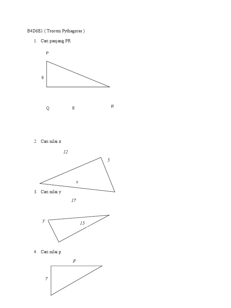 Maths Bab 13 Teorem Pythagoras Worksheet